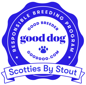 We are proud to be Good Dog Certified. This means our Scotties, health testing, and breeding program adhere to strict guidelines.